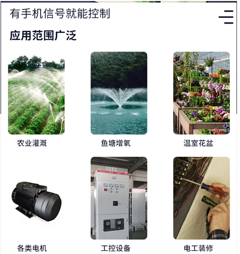 GPRS無(wú)線遙控器開(kāi)關(guān)應(yīng)用范圍廣泛(應(yīng)用領(lǐng)域:農(nóng)業(yè)灌溉、魚(yú)塘增氧、溫室花盆、各類電機(jī)、工控設(shè)備、電工裝修等)