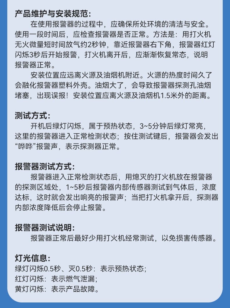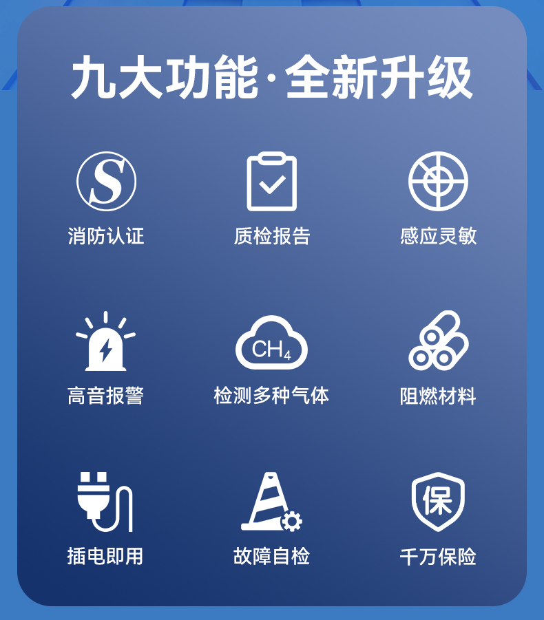 燃氣報警器 (型號PA-216D) 產(chǎn)品規(guī)格 功能特點 資料下載 燃氣報警器 (型號PA-216D)1、多種氣體檢測2、90分貝高音報警3、探測靈敏4、故障質(zhì)檢5、聯(lián)動切斷燃氣6、中國平安保險7.工作電源:外接電源AC220v8.適用場景:適用于家庭廚房、酒店廚房、食堂、商場等場所