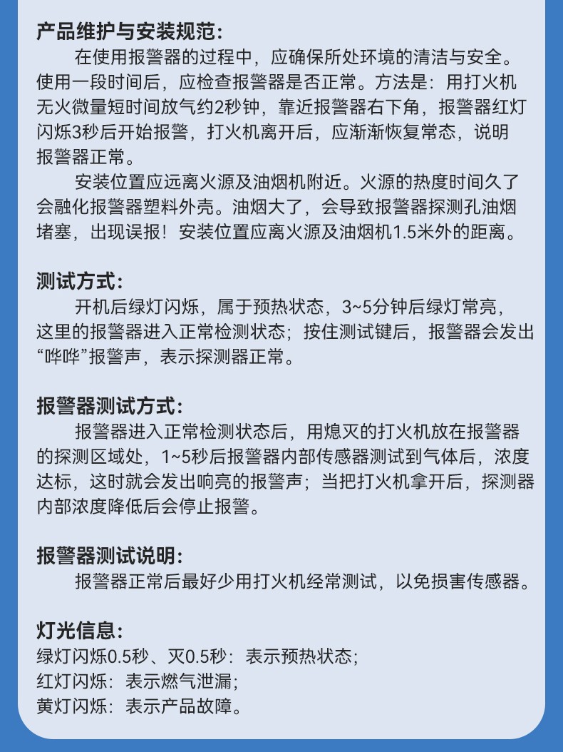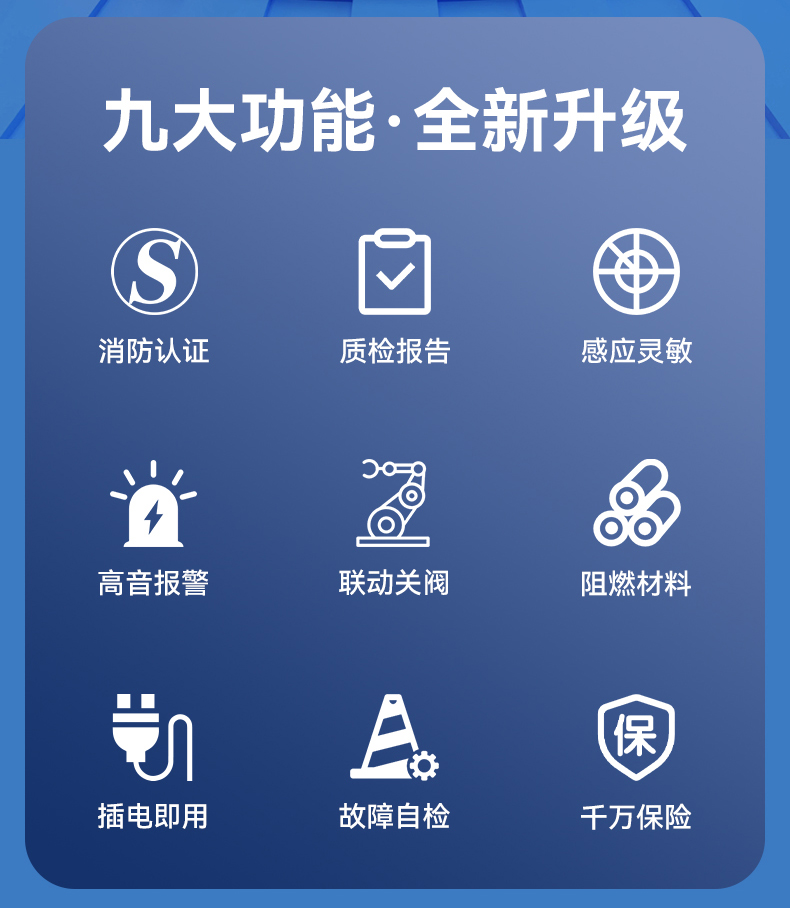 燃氣報警器 (型號PA-219) 產品規(guī)格 功能特點 資料下載 燃氣報警器 (型號PA-219)1、多種氣體檢測2、90分貝高音報警3、探測靈敏4、故障質檢5、聯(lián)動切斷燃氣6、中國平安保險7. 可連接機械手閥適用場景:適用于家庭廚房、酒店廚房、食堂、商場等場所