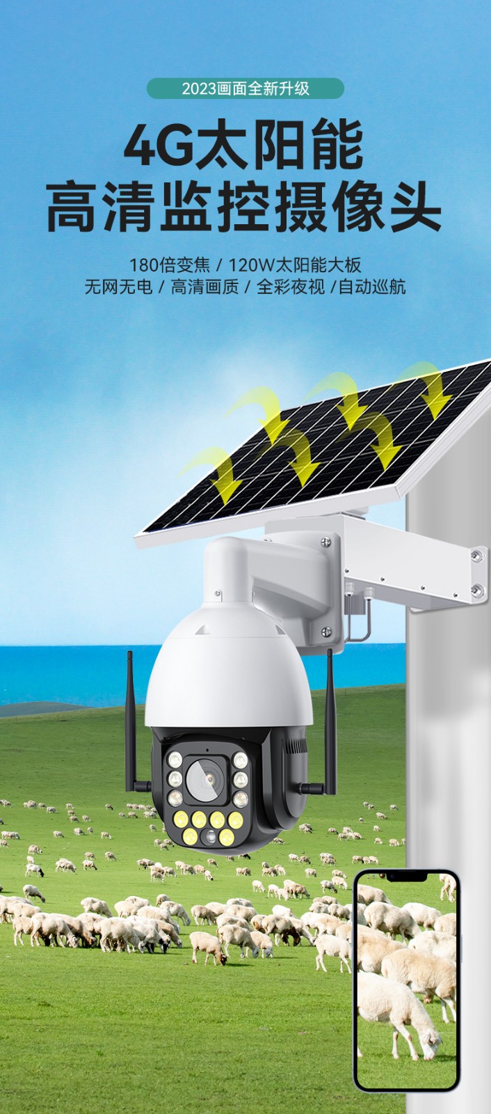 180倍變焦太陽(yáng)能板監(jiān)控?cái)z像頭(激光)