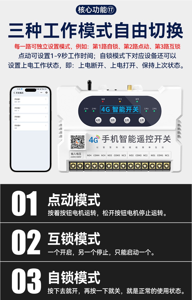 三種工作模式自動(dòng)切換:點(diǎn)動(dòng)模式 、互鎖模式 、自鎖模式