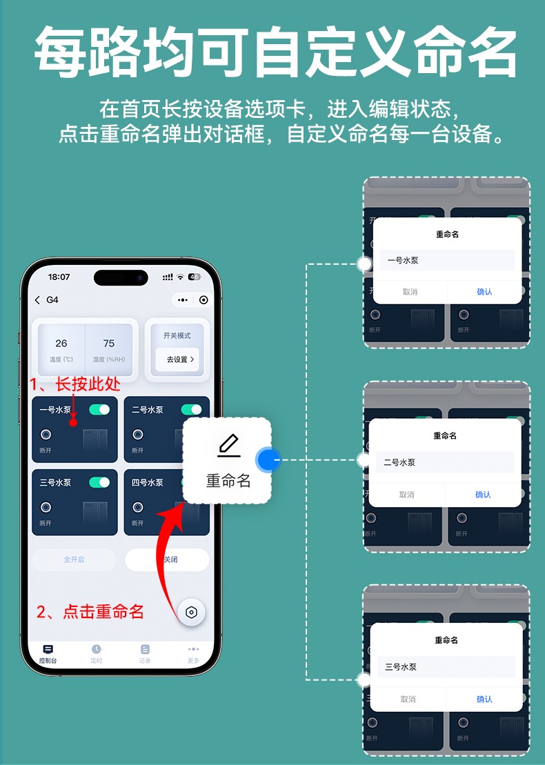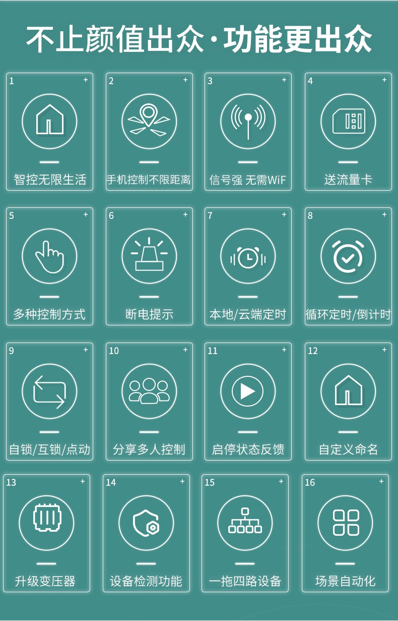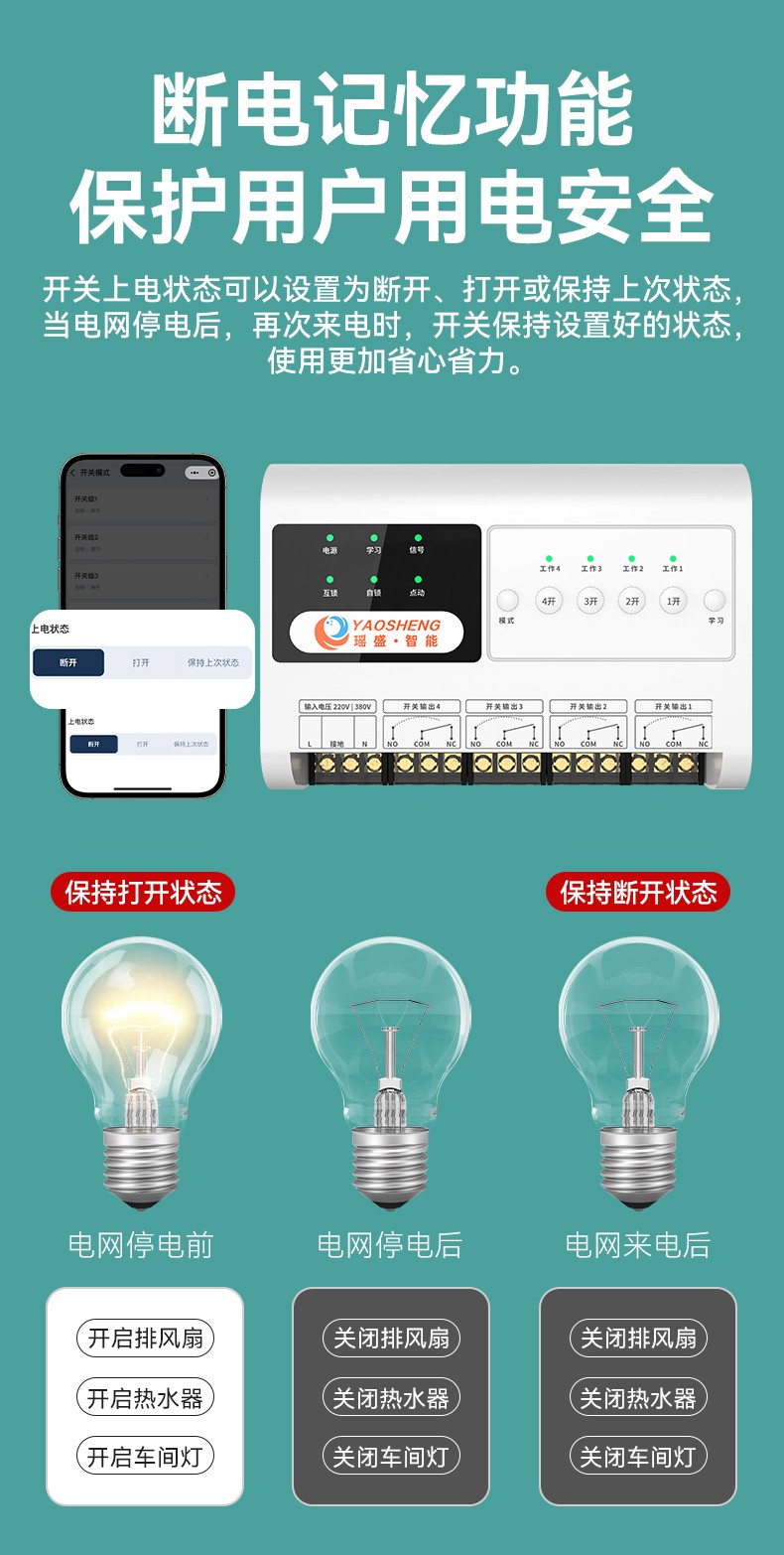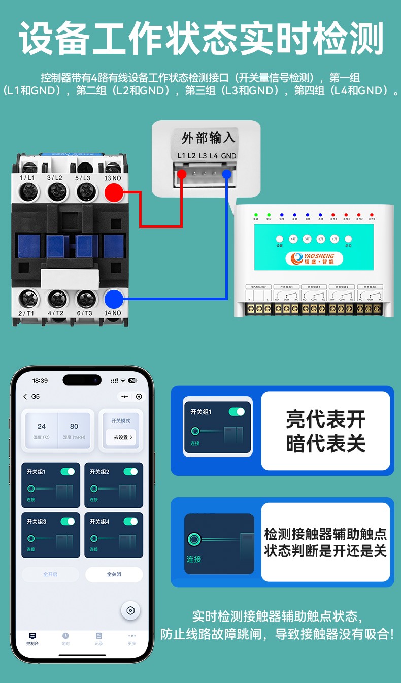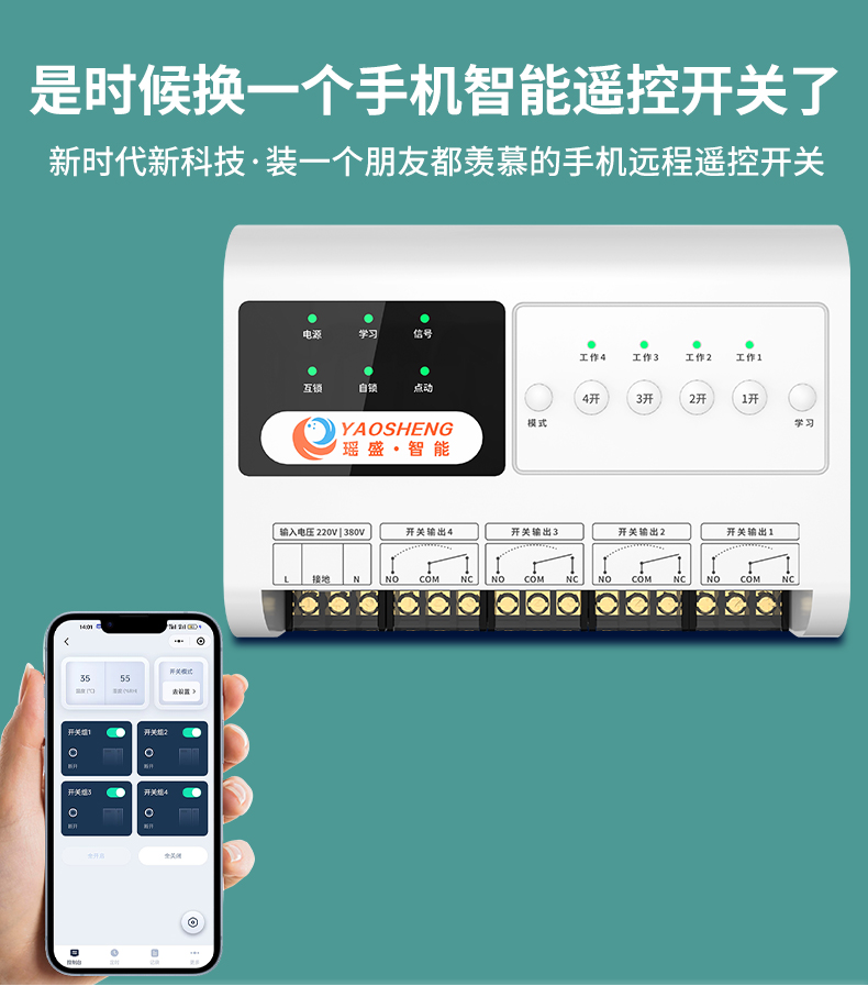 4G 遠程控制開關(guān)(YS-A9) 產(chǎn)品規(guī)格 功能特點 資料下載 4G 遠程控制開關(guān)(YS-A9)1.無需wifi 2.無線距離全國使用3.斷電報警 4.本地定時 、云端定時 、倒計時6.工作模式切換 :點動模式、互鎖模式、 自鎖模式7.多人管理控制 8.設備工作狀態(tài)檢測9.設備啟動反饋10.溫度實時檢測11.可自定義命名控制方式:遙控器控制 、手機小程序控制 、手動控制工作電壓:220v/380v 應用場景:農(nóng)業(yè)灌溉/魚塘增氧/電工維修/工控設備/各類電機/ 溫室花盆