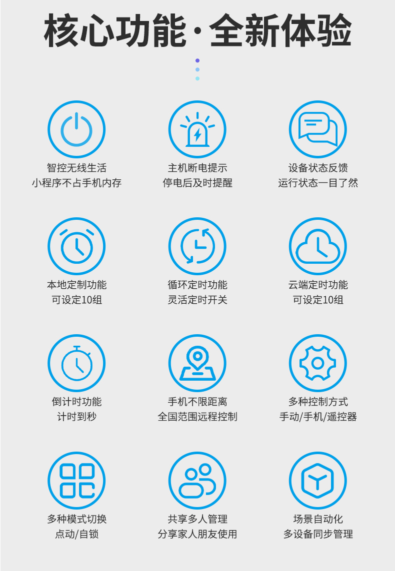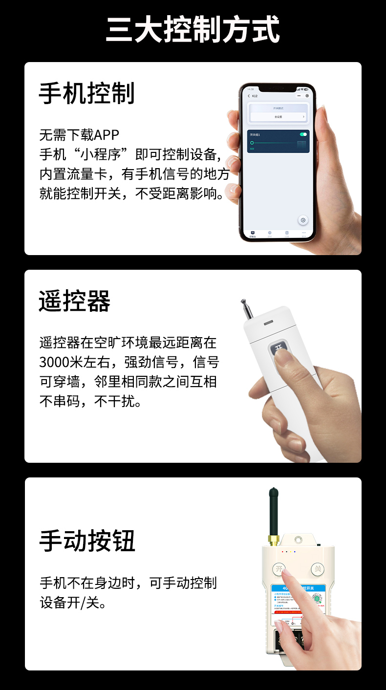 4G遠(yuǎn)程控制開關(guān)(YS-K12) 產(chǎn)品規(guī)格 功能特點 資料下載 4G遠(yuǎn)程控制開關(guān)(YS-K12)1.斷電報警、狀態(tài)檢測、多人管理 、場景自動化、設(shè)備狀態(tài)實時反饋2..云端定時:倒計時、本地定時、 循環(huán)定時3.控制方式:手動按鈕控制、 遙控器、 手機控制 4.多種模式切換:點動/自鎖4.控制距離: 手機不限制距離 、遙控器控制(空曠地3000米)5.應(yīng)用場景: 家具電器、農(nóng)田灌溉、工廠機房設(shè)備