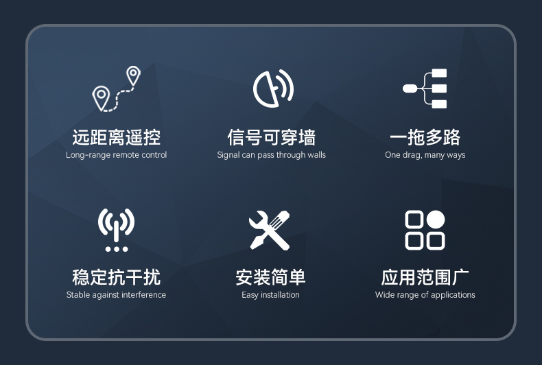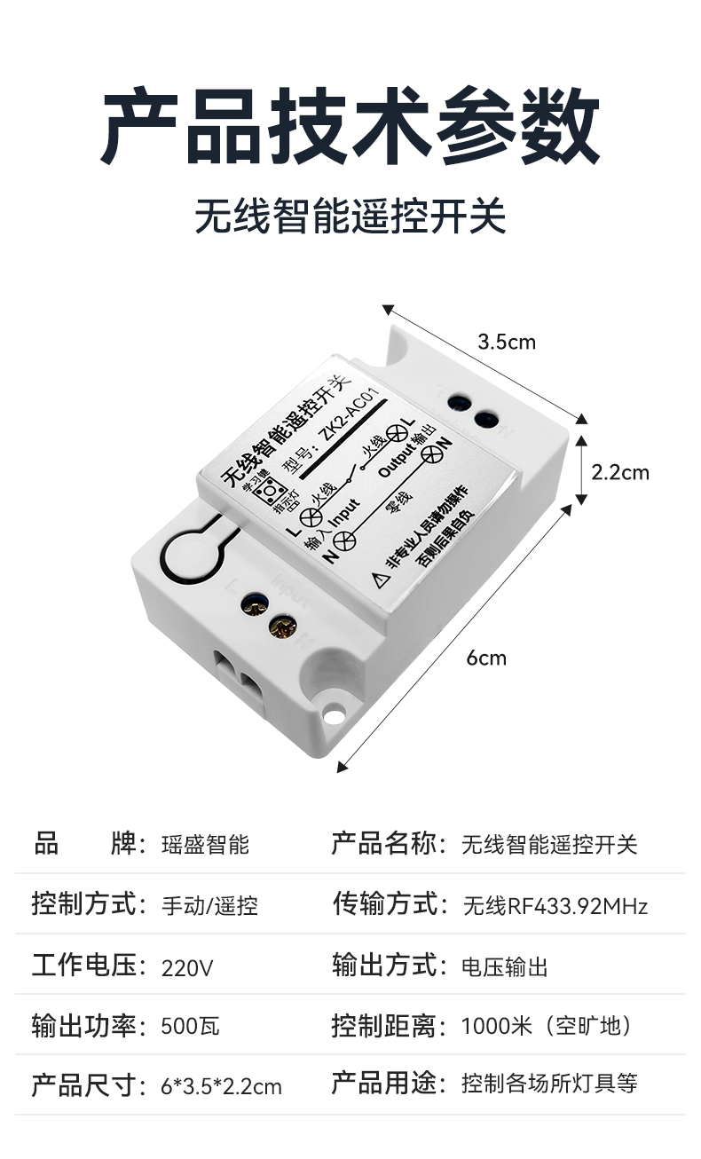 4G遠(yuǎn)程控制開(kāi)關(guān)(ZK2-AC01) 產(chǎn)品規(guī)格 功能特點(diǎn) 資料下載 4G遠(yuǎn)程控制開(kāi)關(guān)(ZK2-AC01)免布線、 一拖多路遙控開(kāi)關(guān)控制距離:1000米(空曠地)遠(yuǎn)距離遙控控制方式:手動(dòng)/遙控斷電記憶保護(hù)工作電壓:220v輸出方式:電壓輸出輸出功率:500瓦應(yīng)用場(chǎng)景: 展廳多燈控制、車(chē)間多燈控制、超市多燈控制、球場(chǎng)多燈控制、居家多燈控制、辦公室多燈控制等